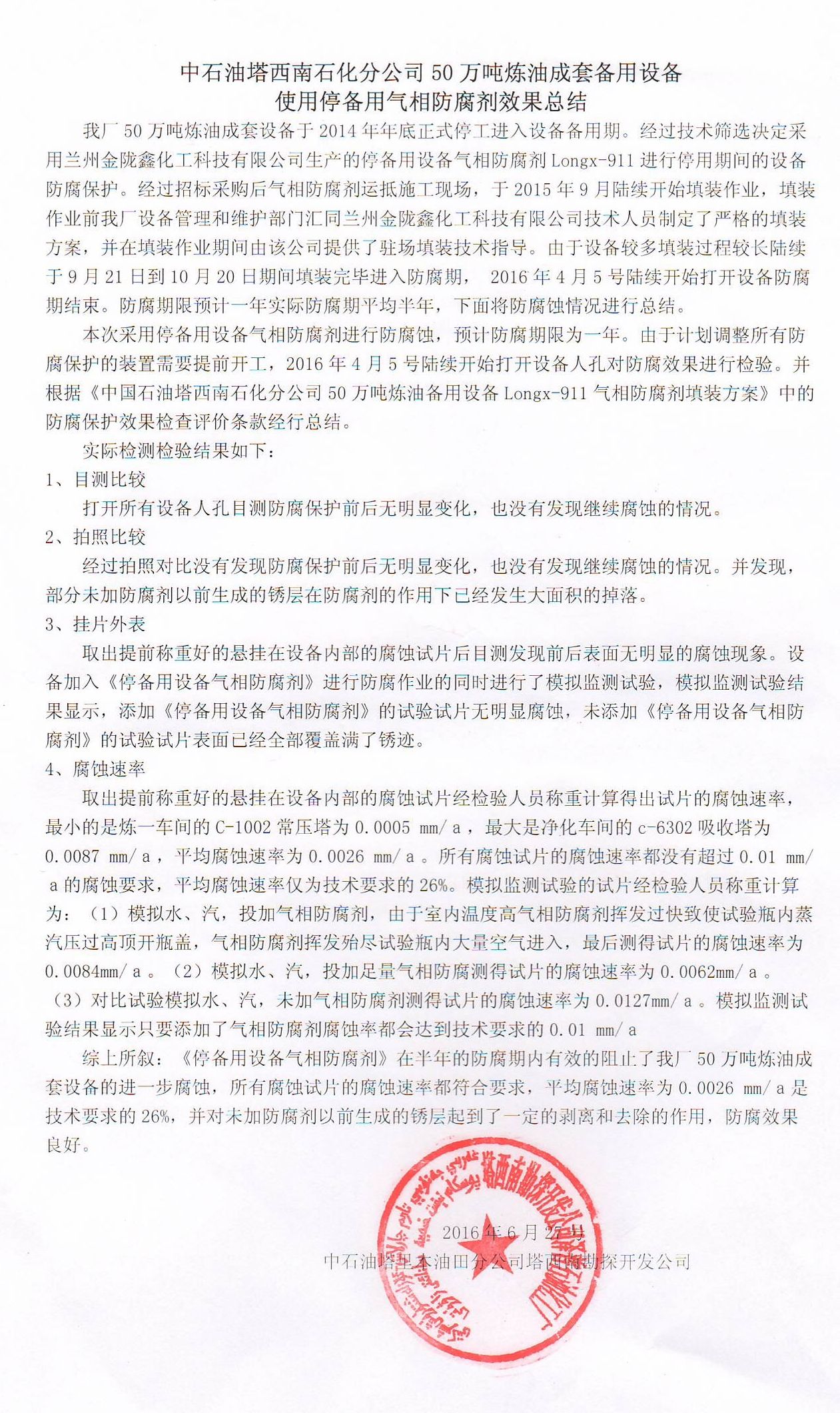 停備用設(shè)備氣相防腐劑在塔西南石化50萬噸成套煉油裝置中的使用效果報(bào)告